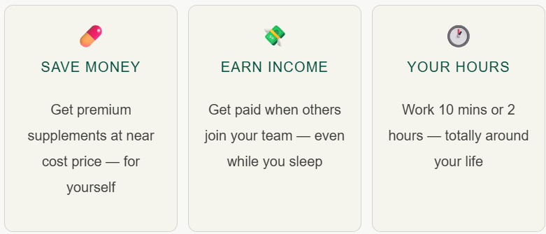 For just $9.95 (£7.50) a month, plus a one-time $40 (£30) affiliate fee, you get access to all the products at member prices AND the opportunity to build a team and earn residual income. That’s income that keeps coming in — even on your bad days, your flare-up days, your “I haven’t left the house” days.